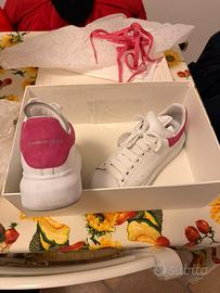 Vendo Scarpe da Donna Alexander McQueen Edizione Limitata Numero 39 Colore Bianco e Fucsia con doppio paio di lacci uno di colore bianco e uno di colore fucsia come nuove indossate 3/4 volte.