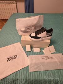 Vendo scarpe Alexander mq Queen nuove colore bianco con bordi blu e tacco color azzurro bellissime in pelle con scatola e dotazioni originali taglia 43