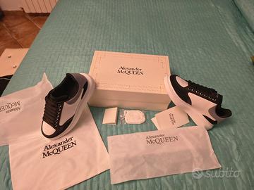 Vendo scarpe Alexander mq Queen nuove colore bianco con bordi blu e tacco color azzurro bellissime in pelle con scatola e dotazioni originali taglia 43