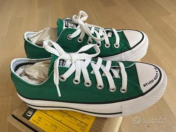 Vendo per taglia sbagliata un paio di scarpe all star originali verdi con confezione originale.