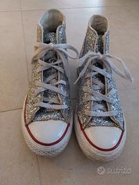 Vendo scarpe All Stars Converse originali TG.39 con zeppa, glitterate argento.