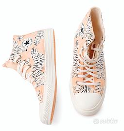 Vendo bellissime Converse All Star alte originali, colore rosa pesca con stampa tigri super particolare e originale.