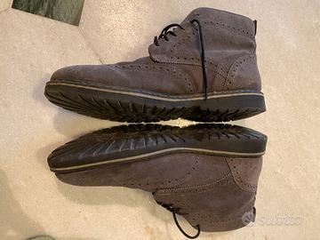Scarpe alte, camoscio, n. 44, usate pochissimo. Abbandonate perché un po’ pesanti. Il posteriore è in pelle internamente. Prezzo fisso non trattabile. Possibilità di vederle e provarle. Solo locali.