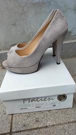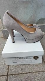 Bellissime scarpe Malien con plateau e tacco da 12 cm, colore grigio chiaro. usate un paio di volte