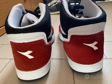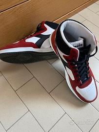 Scarpe alte Diadora DIADORA Raptor HIGH SL - Sneakers alta bianca e rossa con tomaia in VERA PELLE e dettagli neri – usate pochissimo con logo a contrasto. Taglia 46