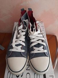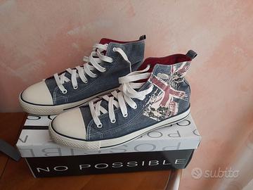 Scarpe alte in tela da uomo, misura 43, tessuto jeans con stampa Let’s rock in the City