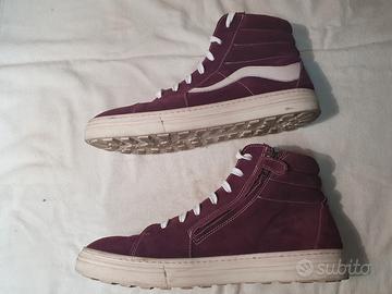 Vendo scarpe MOMINO bordeaux scuro, scamosciate, sopra caviglia cerniera laterale usate pochissimo n° 40 vera pelle, E. 20 ESCLUSE spese di spedizione. Tel. O.P. Michele 333/3906917