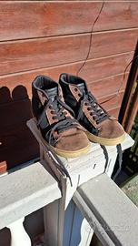 Scarpe alte Navigare, n. 41. - Tomaia in pelle scamosciata marrone e tessuto nero. - Lacci neri (inclusi, anche lacci castano scuro) - Suola in gomma.