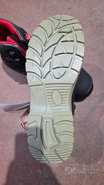 Scarpe anti infortunistiche SAFE Centrale S3 FO SR Taglia 44. Prodotto nuovo con etichetta. Tomaia in morbida pelle nubuck idrorepellente con inserti super traspiranti per l'uscita del vapore acqueo. Portapacchi con inserto a sfilamento rapido. Suola con battistrada in poliuretano antiscivolo e antiabrasione. Puntale in materiale composito, leggero e resistente a 200 J. Lamina antiperforazione tessile resistente a 1100 N. Completa di soletta Helium, in poliuretano sagomato rivestito in tessuto traspirante, antistatica. In scatola originale.