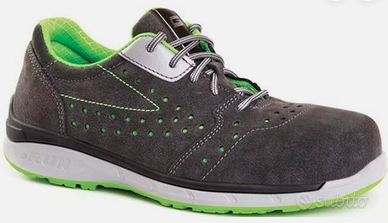 Scarpe antifortunistica , anti shock, anti torsion, anti slipping, marca GIASCO modello 3Run numero 43. Colore grigio antracite, e verde acido.