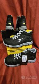N° 2 Confezioni di scarpe antinfortunistiche Diadora Utility, in pelle nabuck nuove, di colore nero, N° 44, in scatole originali, modello Run Mid S3 Src Esd.