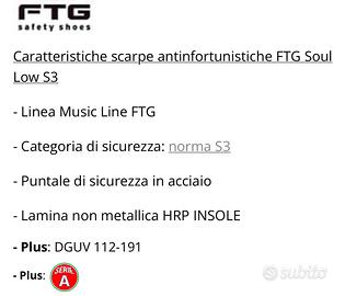 Vendo scarpe antinfortunistiche marca FTG , sono anche alla moda , sono leggerissime, belle e comode NUOVE numero 42 prezzo 30euro no perditempo.