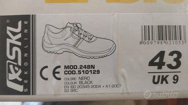 Scarpe antinfortunistiche SKL, NUOVE, mai indossate. Taglia 43. Tomaia: pelle crosta bovina Fodera: Air Mesh Puntale: puntale in acciaio Piastra centrale: piastra centrale in acciaio Soletta: EVA+ Mesh Suola: iniezione PU/PU
