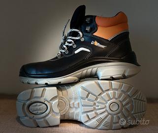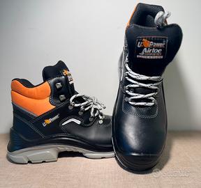 Scarpe antinfortunistiche con puntale aluminium e sistema Save & Flex Plus, progettate per il massimo confort ! Alte e leggere con tomaia in pelle micro idrorepellente putek plus , chiusura con lacci e tassello imbottito in naylon per un confort prolungato !