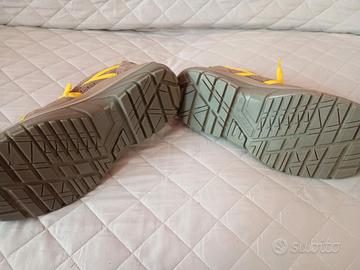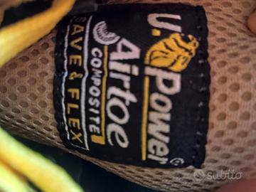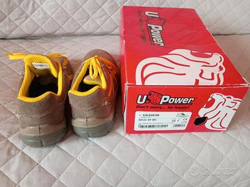 Scarpe Antinfortunistiche U-Power Reflex S1P SRC - N. 42 - NUOVE one complete di scatola originale. Taglia: 42 (EU) / 8 (UK). Materiale: Tomaia in pelle scamosciata grigia con dettagli e stringhe gialle ad alta visibilità. Puntale Airtoe Composite e soletta anti-perforazione Save & Flex.