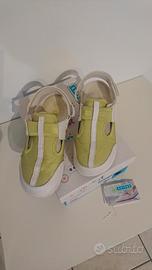 Scarpe misura 37 gomma e tessuto modello sandalo senza puntale, chiusura a strappo, soletta removibile bianco verde acido, morbidissime. Usate tre settimane. Pagate 40 ?. Ritiro zona Udine.