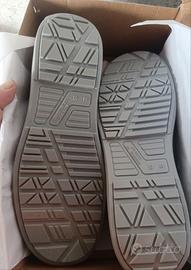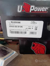 Scarpe antinfortunistiche basse, leggere e comode u power della Linea Red UP, con tomaia in morbida pelle scamosciata forata ultra traspiranti e puntale in alluminio, antiperforazione, antiscivolo e suola PU/PU High Rebound in Elastopan di Basf S1P SRC ESD