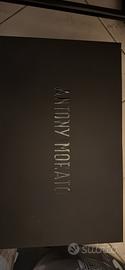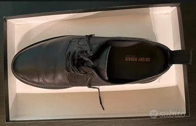 Vendo paio di derby eleganti Antony Morato in pelle nera lucida, modello moderno con suola oversize gommata ammortizzata. Indossate una sola volta per poche ore (in casa + breve uscita), vendute perché risultano strette per il mio piede (taglia fedele, ma forma un po’ aderente). Condizioni: ottime, praticamente come nuove – nessuna graffiatura, segno o usura visibile sulla pelle o sulla suola. Pelle morbida e lucida intatta, interno pulito. Caratteristiche principali: • Pelle nera di alta qualità, effetto lucido • Design contemporaneo con punta leggermente squadrata • Suola spessa e comoda (altezza circa 4 cm, buona ammortizzazione) • Interno foderato in pelle • Lacci neri inclusi • Pull-tab posteriore per calzarle facilmente • Logo marchiato internamente e suola con dettagli brand • Realizzate in Italia (Made in Italy autentico) Inclusa scatola originale nera con logo in rilievo + scontrino di acquisto. Taglia: 44 Prezzo: 105 € trattabili Spedizione: disponibile con TuttoSubito (imballo curato e tracciato) o ritiro a mano a Torino. Motivo vendita: strette per me, altrimenti perfette. Per altre foto (dettagli suola, interno, eventuali segni minimi), misure precise o per fissare un appuntamento scrivimi pure in chat. Prodotto originale Antony Morato, qualità premium italiana – prezzo super conveniente rispetto al nuovo (acquistate a 170€).