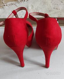 scarpe aperte con tacco usate solo una volta in vellutino rosso,n.38,perfette condizioni.