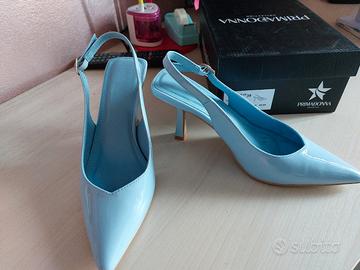 scarpe aperte dietro color azzurro, num 39 messe una sola volta. marca PRIMADONNA preferibilmente consegna a mano