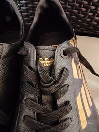 Vendo scarpe Armani originali nere e oro in vera pelle praticamente mai usate, tenute maniacalmente, nessun graffio e nessun difetto, taglia 44,5.