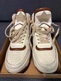 Vendo sneaker donna ASH mod. Bono. In pelle, colore bianco con bordino e suola marrone, lacci beige. Taglia 38.