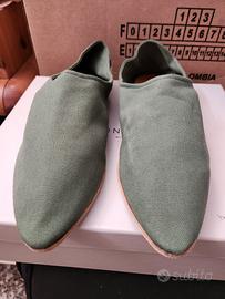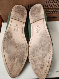Iconiche scarpe loafers Babù, n.42 in tessuto, colore verde, tenute perfettamente.