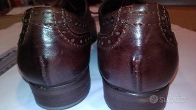 favolose scarpe tipo Inglesina in vera pelle colore testa di moro nelle foto risultano più chiare, usata pochissimo come si può vedere da foto il tacco è bassissimo quindi è una scarpa unisex