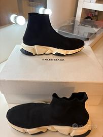 Scarpe Balenciaga calzino pagate 550€. Originali ovviamente subito.it banna articoli illegali. Ci sono 2 difetti sulla suola e sulla scarpa destra, non si notano, ma per questo motivo il prezzo è un affare. Suppongo si possano aggiustare da un calzolaio. Solo spedizione.