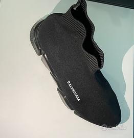 scarpe fatte di un tessuto leggero adatto all’estate e anche all’inverno, rinforzate ai lati. Sono state usate solo una volta. E sono comodissime, è compresa anche la sacca di Balenciaga. Prima di ordinarli online, contattatemi ripeto CONTATTATEMI