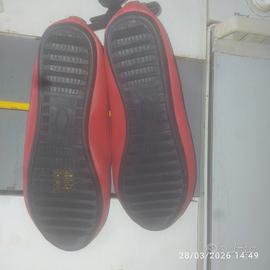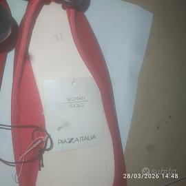 Vendo scarpe rosse stile ballerina rosse MAI USATE con ancora etichetta e gruccia . Materiale misto tra cuoio ed ecopelle senza un graffio o smaltimento sul suo colore rosso intenso .Possono essere usate per stile casual i elegante sotto pantalone o gonna ed è proprio il colore che le rende versatili.
