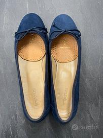 Scarpe ballerine da donna color blu notte, con leggero tacco e fiocchetto decorativo.