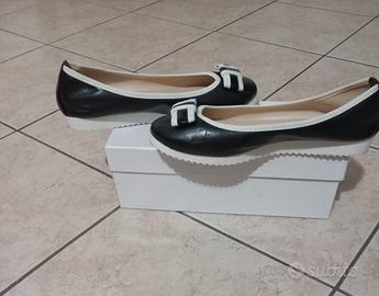 VENDO SCARPE BALLERINE DA DONNA NUMERO 38 COLORE NERO CON FIOCCO DI COLORE BIANCO E NERO IN OTTIMO STATO.IN VERA PELLE PRODOTTO ITALIANO.