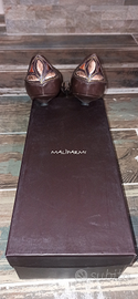 Ballerine in vera pelle testa di Moro con tomaia ricamata, N° 37(calzata comoda anche 37 e 1/2), usate pochissimo, marca MALÌPARMI made in Italy, scatola originale
