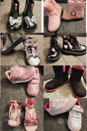 vendo scarpe bambina usate, non nuove. Alcune sfruttate e altre indossate una volta. 10 euro al pezzo spedizione a carico vostro. Il numero è 24 e 25. No reso e non trattabile. Ballerina nera usata una volta. Stivaletti nero camoscio usata una volta così come stivaletti neri pelle con fiocchi perla alla punta, scandaletti rosa con pon-pon, etc. scarpette usate e sfruttate.
