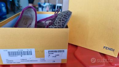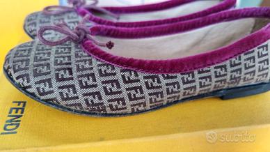 Scarpe bambina ballerina Fendi moto eleganti. Colore marrone beige logo Fendi, con inserti viola-fuxia misura 28 Buono stato con pacco originale