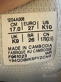 Vendo scarpe utilizzate ma tenute bene da bambina/bambino. La miaura di entrambe è cm. 17,0. Le new balanxe sono EU 28,5 / US 11 / Cm. 17 , Le Asics sono EU 27 / USK 10 / cm. 17,0. Sono di Milano.