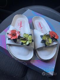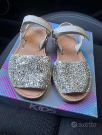 Vendo scarpe bambina :sandali Dianetti in vera pelle bianchi con frange numero 30, 15€. Sandali minorchine PANYNO glitterati bianchi numero 31, tutta pelle 15€. Sandali comodissimi bionatura con fiori arancione e verde e regolabili con strappo.numero 30, 10€. Infine sandali in gomma fucsia numero 31/32 utili per il mare/pietre/ piscina, 5€. Usati ma in buone condizioni. SENZA SCATOLE. Contattatemi per informazioni aggiuntive.