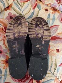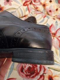 Vendo bellissime scarpe basse con lacci in pelle di vitello color nero. La pelle è molto morbida, indossate sono comodissime. Ho fatto mettere il tacco di gomma, come si vede in foto. Usate ma ancora in ottime condizioni, fanno la loro bella figura in tutte le stagioni. Stile versatile, adatto sia alle occasioni eleganti che a tutti i giorni. Vendo in scatola originale.
