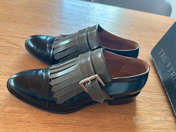 Scarpe basse donna con fibbia e frange, colore nero e fango. Taglia 39. Praticamente nuove!