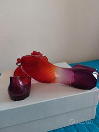 Ballerine in pvc numero 38 in due colori rosso e viola