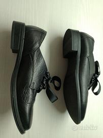 Vendo scarpe da donna della Bata in buone condizioni, colore nero, taglia 39. La scarpa destra internamente presenta un difetto vicino al prezzo originario delle scarpe. Inoltre i lacci originali sono quelli presenti all'ultima foto, basta semplicemente rimetterli
