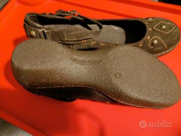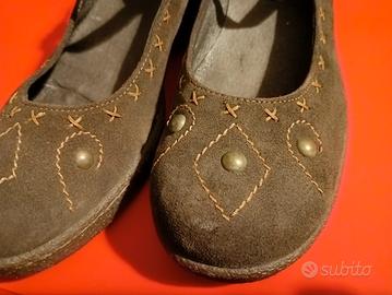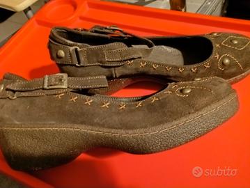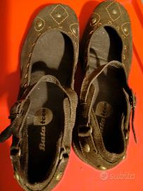 Scarpe scamosciate Bata color marrone scuro con laccetto regolabile, suola a zeppa in gomma
