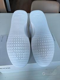 sneakers da uomo Geox modello Kennet, caratterizzate da una tomaia in pelle bianca con dettagli a contrasto e suola traspirante.