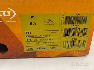 causa errore acquisto vendo scarpa bassa modello omnia v-light gtx colore azzurro nuove mai indossate numrero 42 1/2 con etichetta e in scatola originale prezzo non trattabile
