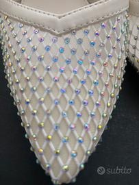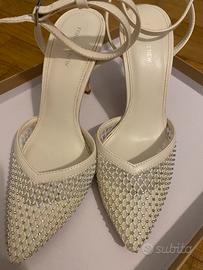 Vendo scarpe bianche con il tacco, indosati una volta. Misura 38, . Un piccolo grafio scarpa sinista come nella foto, che si nota pocchisimo.