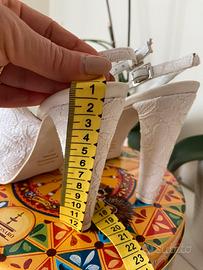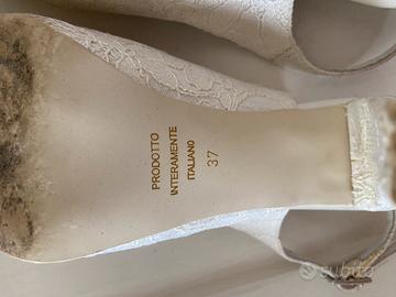 Scarpe bianche in pizzo da sposa, usate solo un giorno. Super comode.