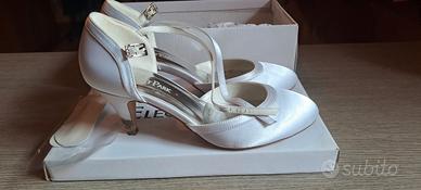 Scarpe in raso/satin bianco semplici con tacco 7cm. Numero della scarpa 38, calza grande.