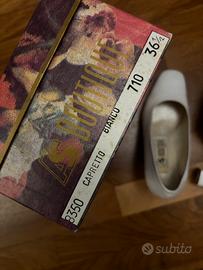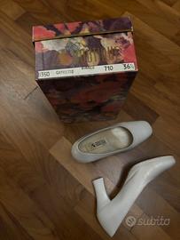 Vendo scarpe buanche da sposa, in morbidissimo vitello. Usate solo 1 volta. N. 36.5. Da mettere salvatacchi. Consegna a mano Ostia - Roma