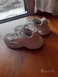 scarpe ginnastica sportive,colore bianco con lacci con sotto para un po rialzata